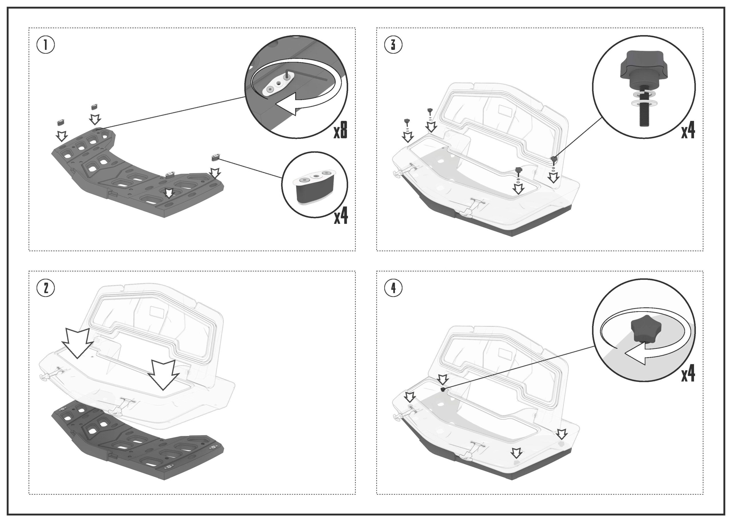Kufer można łatwo zamontować za pomocą szybkozłączek dołączonych do zestawu.