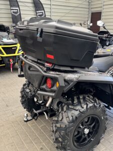 Tylny kufer do pojazdów ODES AODES   650 850 1000. . Usztywnienia zapewniają dodatkową wytrzymałość konstrukcyjną. Dzięki temu kufer jest nie tylko funkcjonalnym, ale także fajnym dodatkiem . Kufer posiada wbudowane 2 metalowe zamki oraz gumowa uszczelkę, która zapewnia szczelne dopasowanie wieka, co gwarantuje ochronę bagażu. Kompletny zestaw : Szybko złączki – 4 szt. ;Zamki metalowe – 2 szt; Odblaski – 2 szt. Wymiary: 115.5cmx59,6cmx43,4cmPojemnosc: 120 litrów